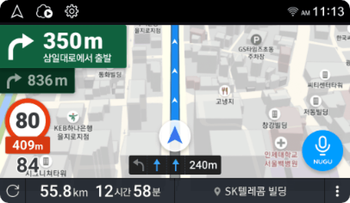 Smart Navigation TMAP은 르노코리아 (XM3, CAPTUR, 르노마스터) 전용 내비게이션 시스템으로 최신버전 TMAP과 NUGU 음성인식 서비스를 차량에서 이용할 수 있습니다. 스마트폰 모바일 핫스팟을 통해 차량 시스템과 연결된 상태에서 모바일 TMAP과 유사한 수준의 서비스를 받을 수 있습니다.