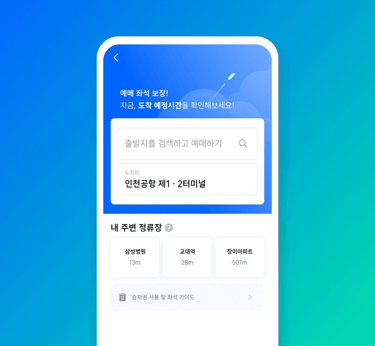 잔여좌석 때문에 마음 졸이지 않고 모든 정류장에서 좌석예매를 할 수 있어요